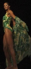 asymmetrical 1 piece with scrunch waist and matching long mesh robe by Body I.D. |