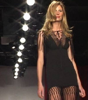 climbed the highest Mountain by coming in under the lights -- New York style. Her head, as you can see, was not in the clouds. This sexy Little Black Dress with its tie strings and fringes swings in every way ... with every step you take. Below is a short shot. Making a statement of Tight and Fitted. The Modern Military Uniform for urban dramatics. |