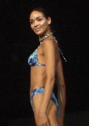 Bottom: 2 piece shimmering Blue Hawaiian floral triangle top suit by Ocean Ave.
