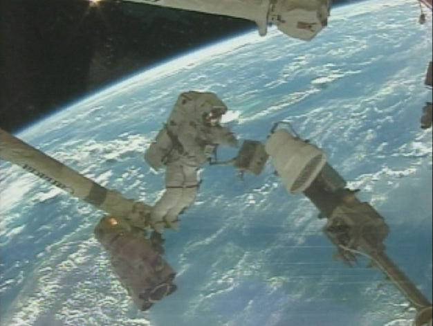 in this very low orbit, 250 miles only (considering the moon is a quarter million miles away from earth, we are flying the shuttle and the station only 250 miles above the earth." |