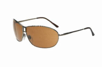 Brown glass, bronze frame Aviator. Sunglasses found in fine department stores everywhere. For the Designer name look you can also see them off and on at a "Sunglass Hut" near you. |