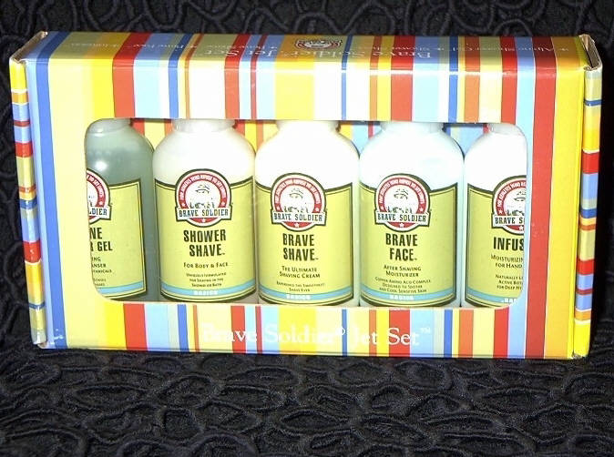 hand. Refuse to set limits. This is the Brave Soldier. Brave Soldier men's skin products are created from only the finest natural ingredients. Tea Tree Oil, organic Jojoba, Lavender and Green Tea add healing powers and delicate aromas to each item in the Brave Soldier product line. Brave Soldier is available at select Sephora locations (sephora.com), Nordstrom's, and Bath & Body Works. For the men you will find shaving products, crash packs, solar shields, antiseptic healing ointment, shower gels plus. Featured above is the Brave Soldier Jet Set under $ 30. |