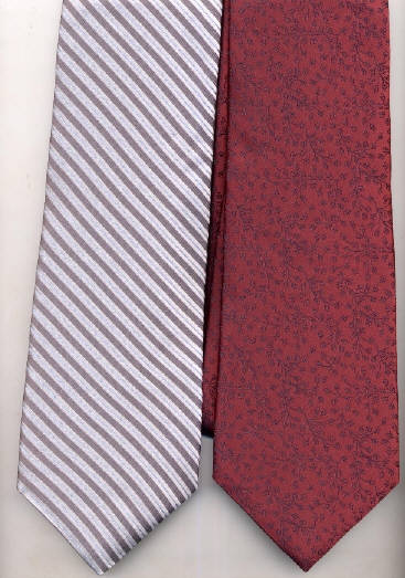 in The Look (color, pattern, style). Choose wisely. When you put your hand on a tie you can tell if it is good. You can feel it. We put our hands on these. They are made of fine silk. Imagine how they felt. Imagine how a man will feel each time he strokes his tie. (And yes, men stroke their tie. It comes naturally.) These Ties are DKNY. Found in quality clothing stores. Solids, Stripes, and Patterns. Many styles to choose from. |