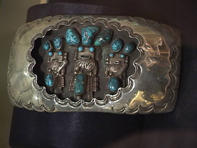 Belt Buckle. 3 - dimensional detailed Figures - Silver and Turquoise.