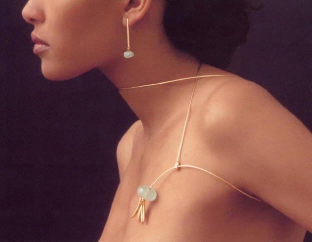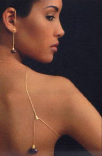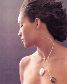 slips over the left hand and down her arm. The other side of the figure 8 loop slips over the head. |
