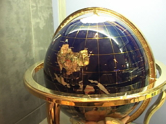 semi-precious stones. The desktop globes and free standing globes are also unique conversation pieces as they brightly decorate any room. Lapis Ocean with Metal base. Globes range from $16.00 to $275.00 -- |