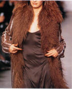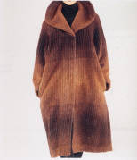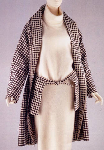 Apron on a turtleneck dress, a navy pocket apron on a skirt, and a pocket coat. Below: the Hooded, Gabardine, Mongolian Lamb, and Alpaca coats. |