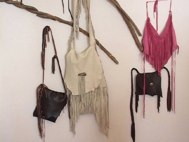 would be another way of putting it. The Spirit of many Generations. The collection includes leather and suede Halter Tops, Vests, Belts, Belt Bags, Shoulder Bags, Handbags, Feather Headbands, and Giant Dream Catchers. |