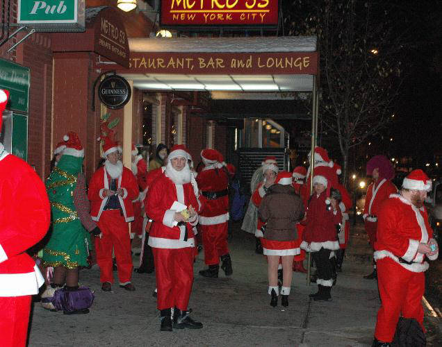 around Manhattan you will be amazed at what you might see. You may not see one Santa Clause here and there. You may see a bunch of them. And they may have Elves with them too. Almost ... anything is
