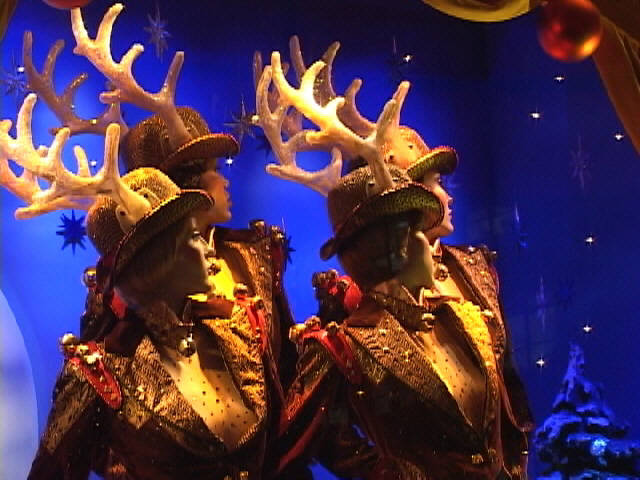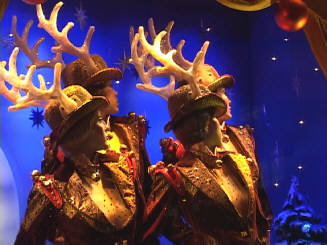season vignettes; wooden soldiers, reindeer, and glittering delights. |