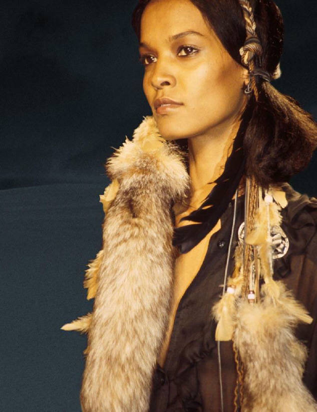 Shirt Dress with button through front and ruffle detail by Luella Bartley ... and a woven cord headdress with Foxtails and shell detail. |