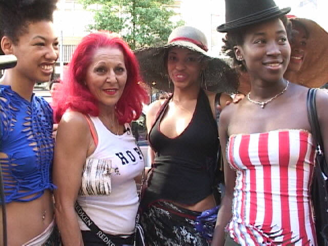 Fashion icon Patricia Field takes a shot and poses for the photogs with people on the Street.